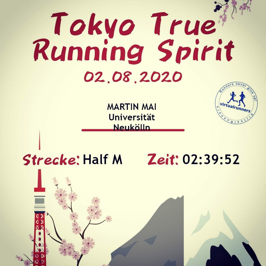 So kam es, dass wir am letzten Sonntag zum virtuellen Tokio Olympia Halbmarathon angetreten sind. Einmal um die ganze Welt verteilt läuft jeder für sich, doch alle gemeinsam. Wir waren auf dem Flughafen Tempelhof. Das Feld war gut voll mit Läufern. Doch selbst 1.000 oder mehr Menschen stören sich ja hier noch nicht.